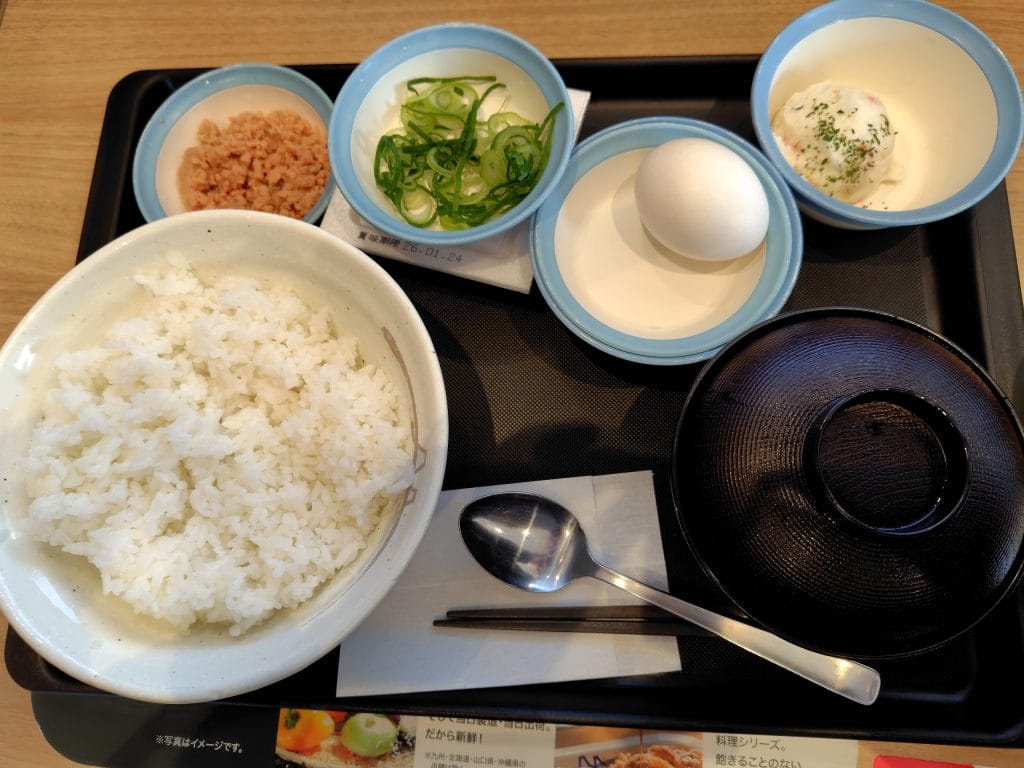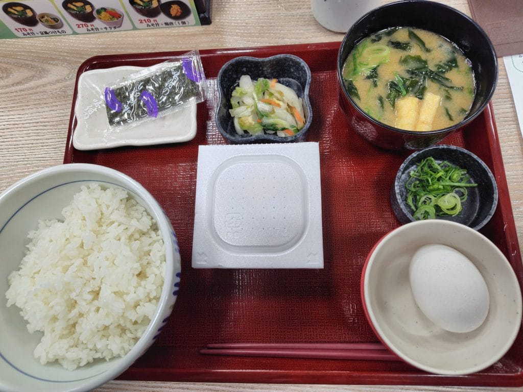 こだわり卵の納豆朝食が390円ですが、納豆を抜けば320円になります。