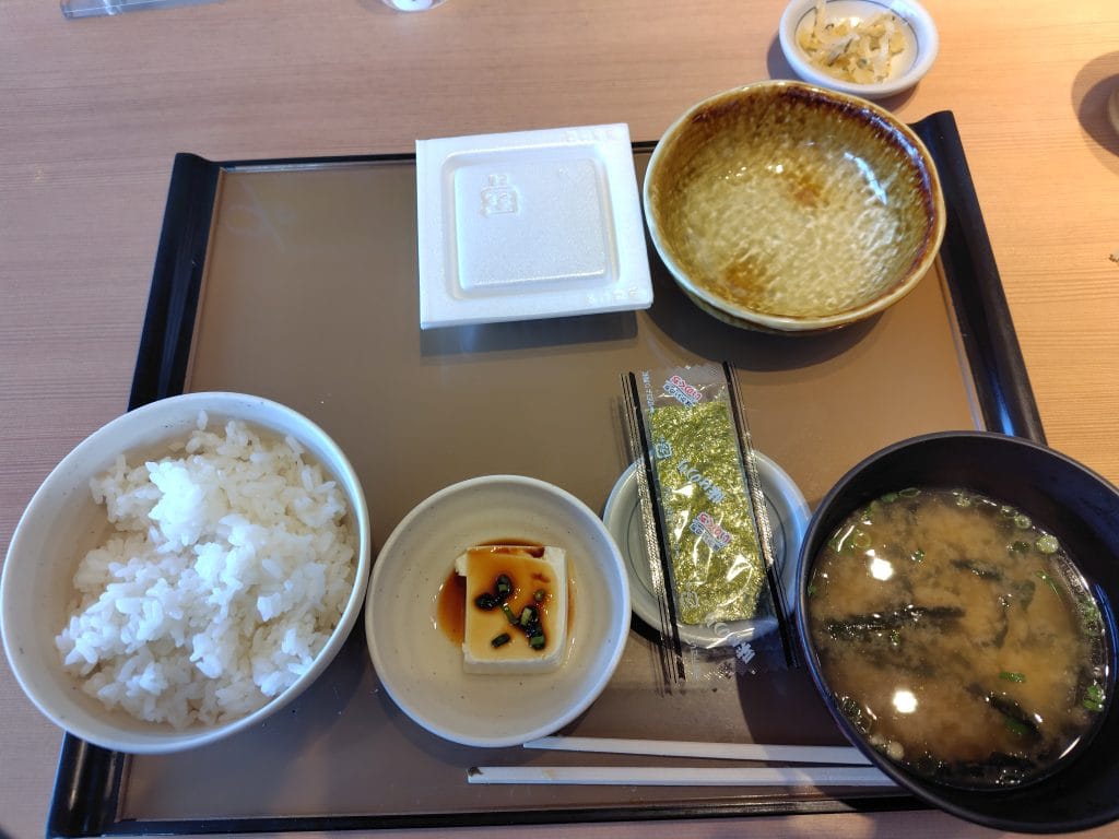 そのときの気分で牛皿にしたり、納豆にしたりと選べるのがいいです。また、ご飯大盛が追加料金なしで選べるので、がっつり食べたい人にもおすすめです。